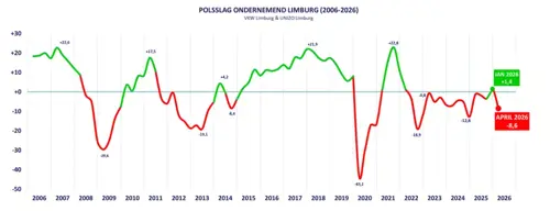 Polsslag Ondernemend Limburg april 2026: van +1,4 naar -8,6